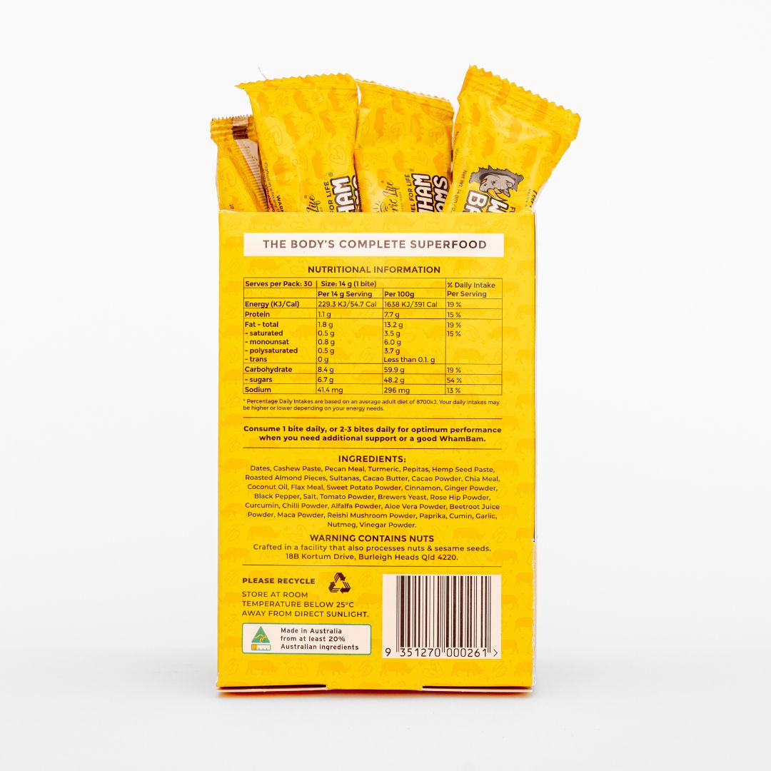 WhamBams were designed to enhance athletic performance, improve muscle repair, reduce delayed onset muscle soreness (DOMS) after exercise, enhance vitality, support fertility & virility, improve gut health and microbiome diversity, and to protect the liver and body against inflammation.