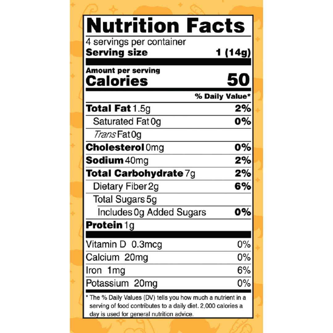Dates, Cashew Paste, Pecan Meal, Turmeric, Pepitas, HSP, Roasted Almond Pieces, Sultanas, Cacao Butter, Cacao Powder, Chia Meal, Coconut Oil, Flax Meal, Sweet Potato Powder, Cinnamon, Ginger Powder, Black Pepper, Salt, Tomato Powder, Brewers Yeast, Rose Hip Powder, Curcumin, Chilli Powder, Alfalfa Powder, Aloe Vera Powder, Beetroot Juice Powder, Maca Powder, Reishi Mushroom Powder, Paprika, Cumin, Garlic, Nutmeg, Vinegar Powder.